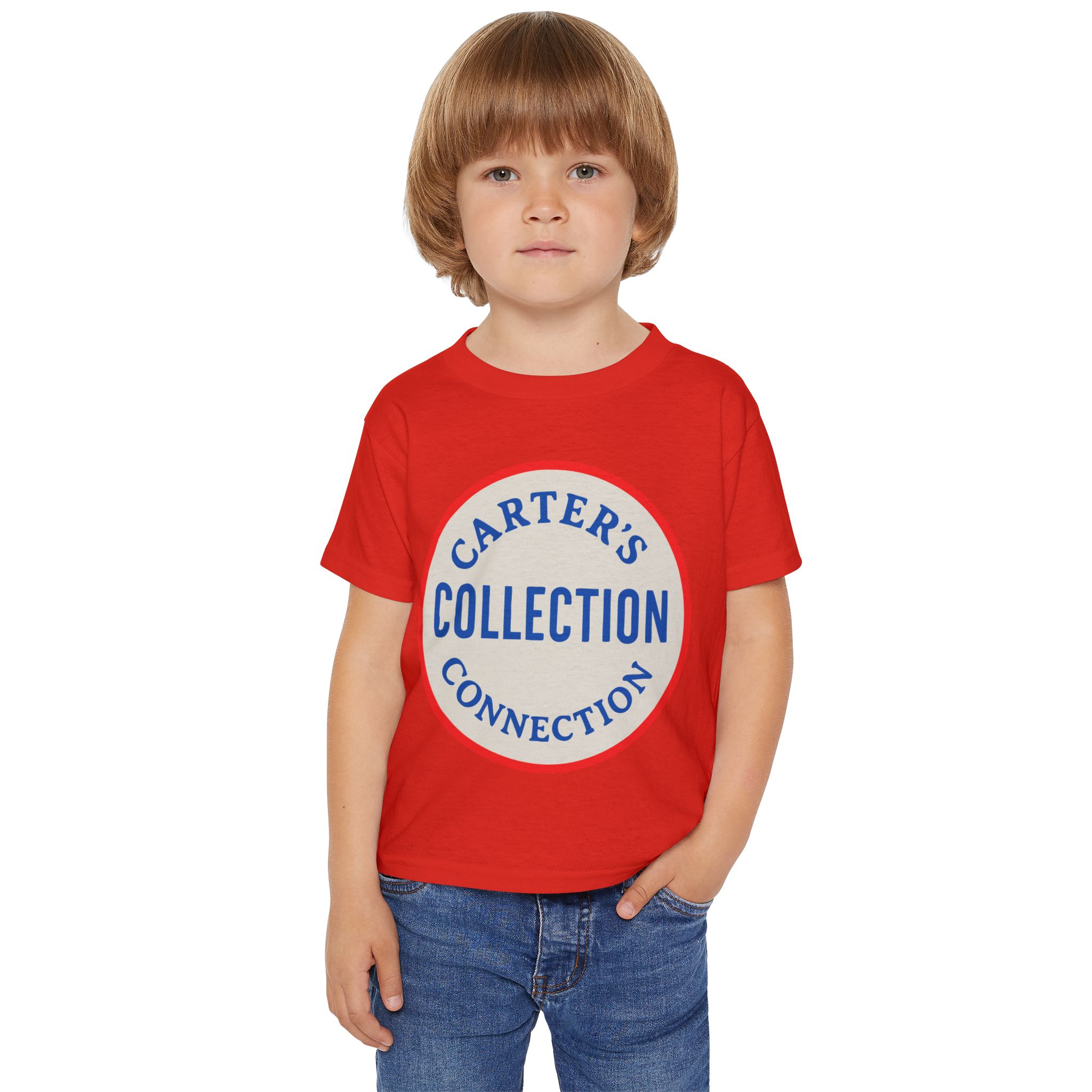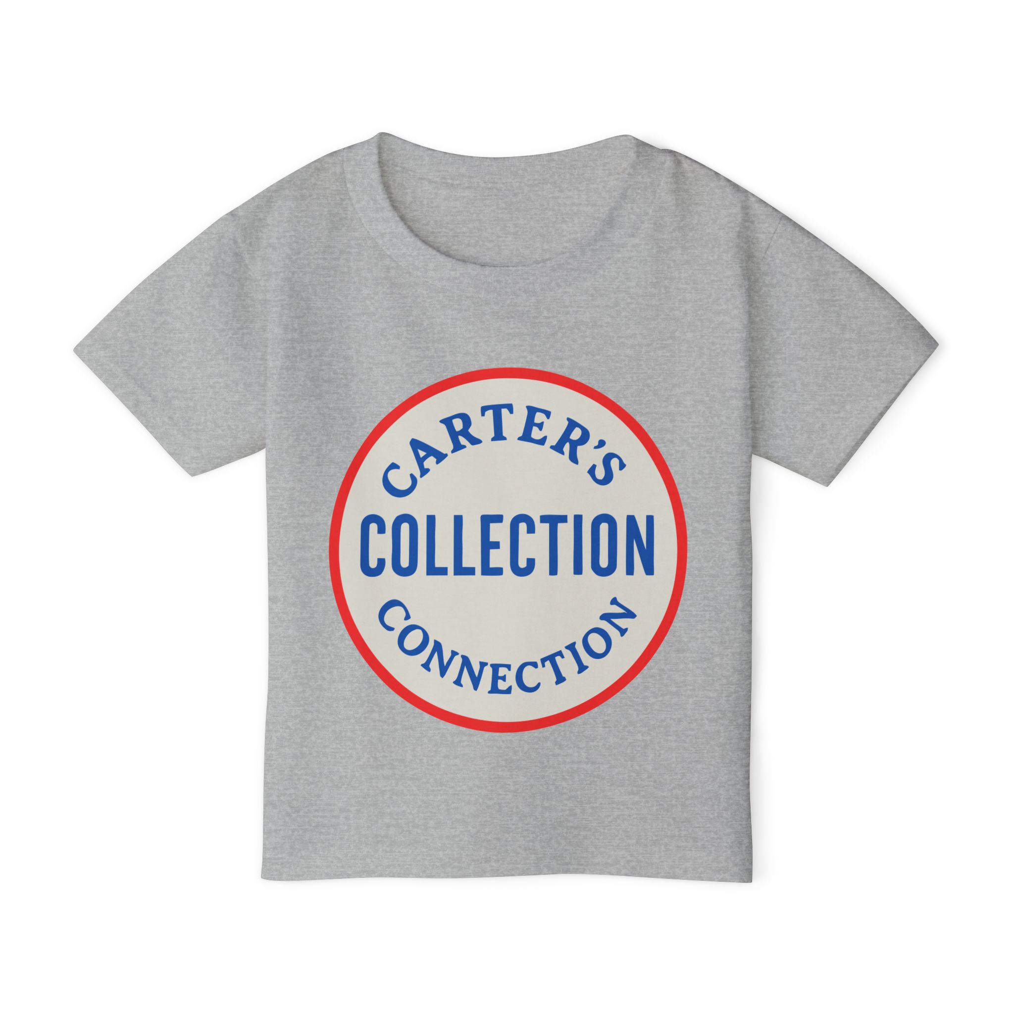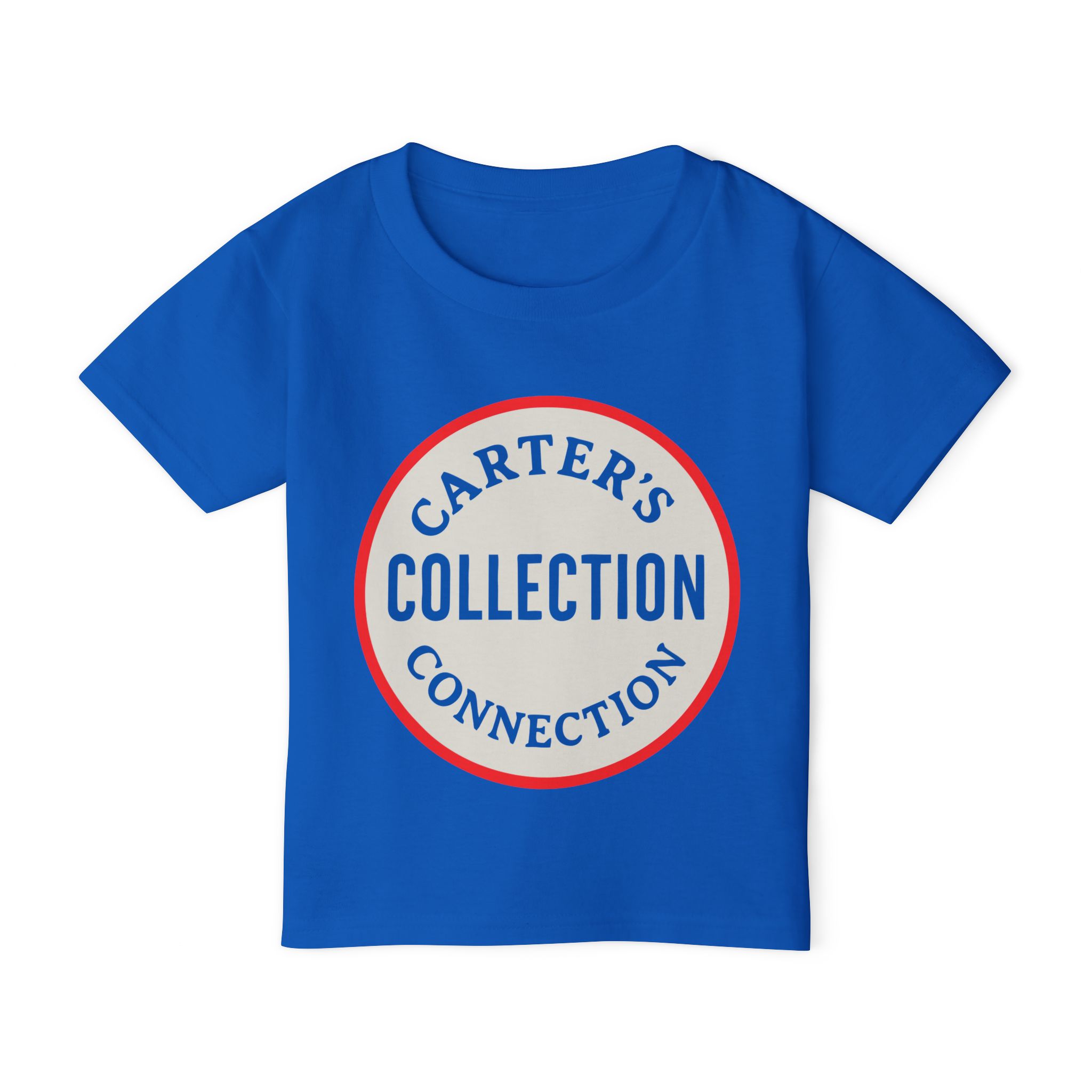 This little tee brings a confident, vintage-team vibe to a toddler’s everyday wardrobe. The soft white cotton canvas shows off a bold circular logo in warm red and blue — “Collection” stacked inside, with curved lettering above and below that suggests a family name or club. It sits low-key and sporty on a classic-fit silhouette that keeps movement easy and looks tidy after tumble-drying. Lightweight but sturdy, the shirt wears well through playtime and washes, while the ribbed collar and taped shoulders hold the shape so it keeps looking crisp. Slip it on for casual family outings, photos, or neighborhood adventures — it reads like a tiny member’s jersey with personality.