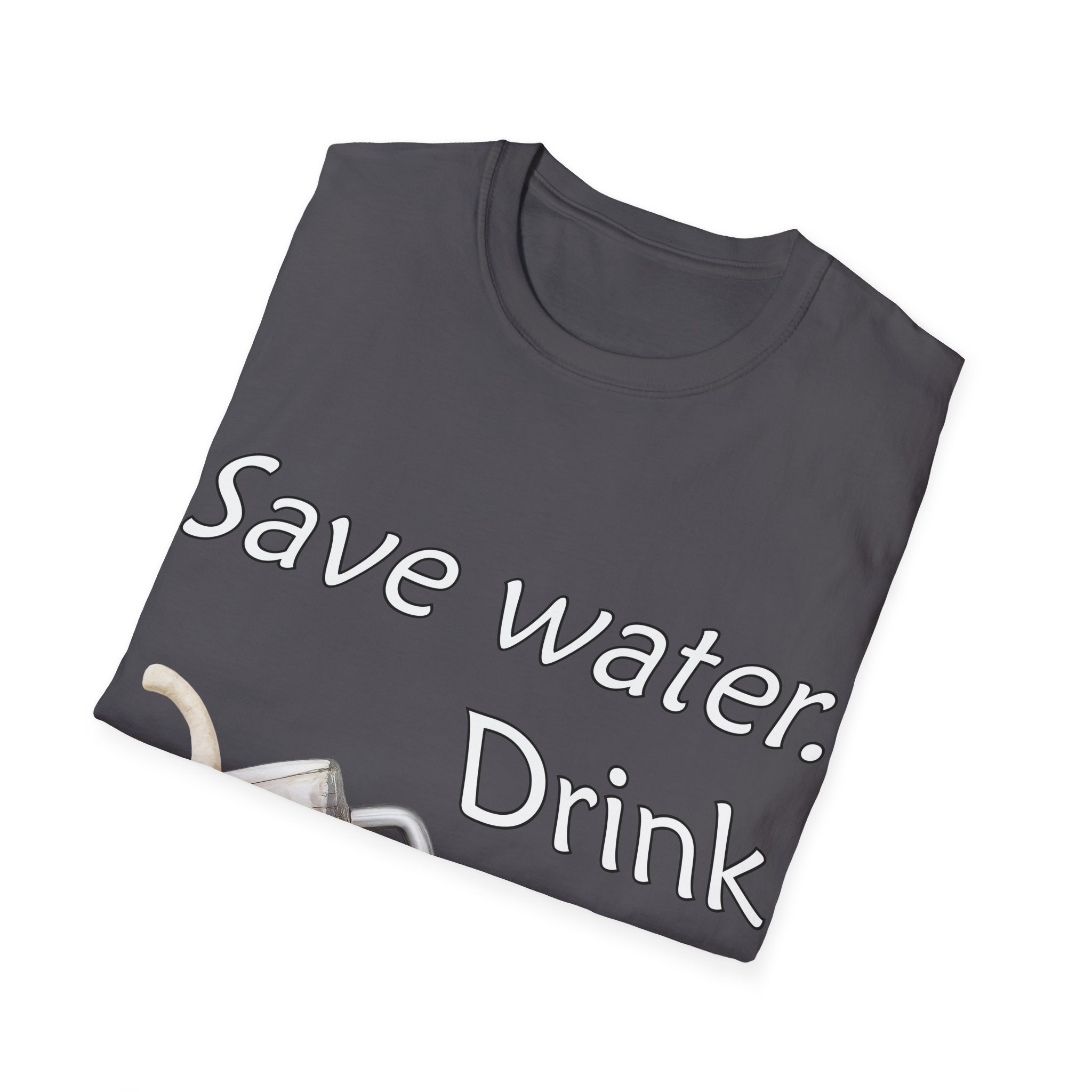 Smart, sharp, and straight to the point — this lightweight cotton tee features a clean tipped-beer-mug graphic with a half-full pour spilling out just enough to make the message clear: